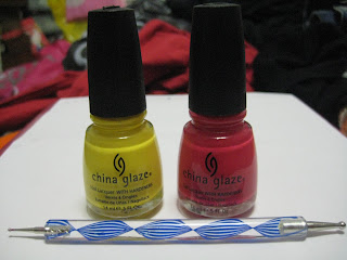 China Glaze Happy Go Lucky, China Glaze Mediterranean Charm, a nail art tool a bought earlier this year in Hong Kong (I can finally use it!)